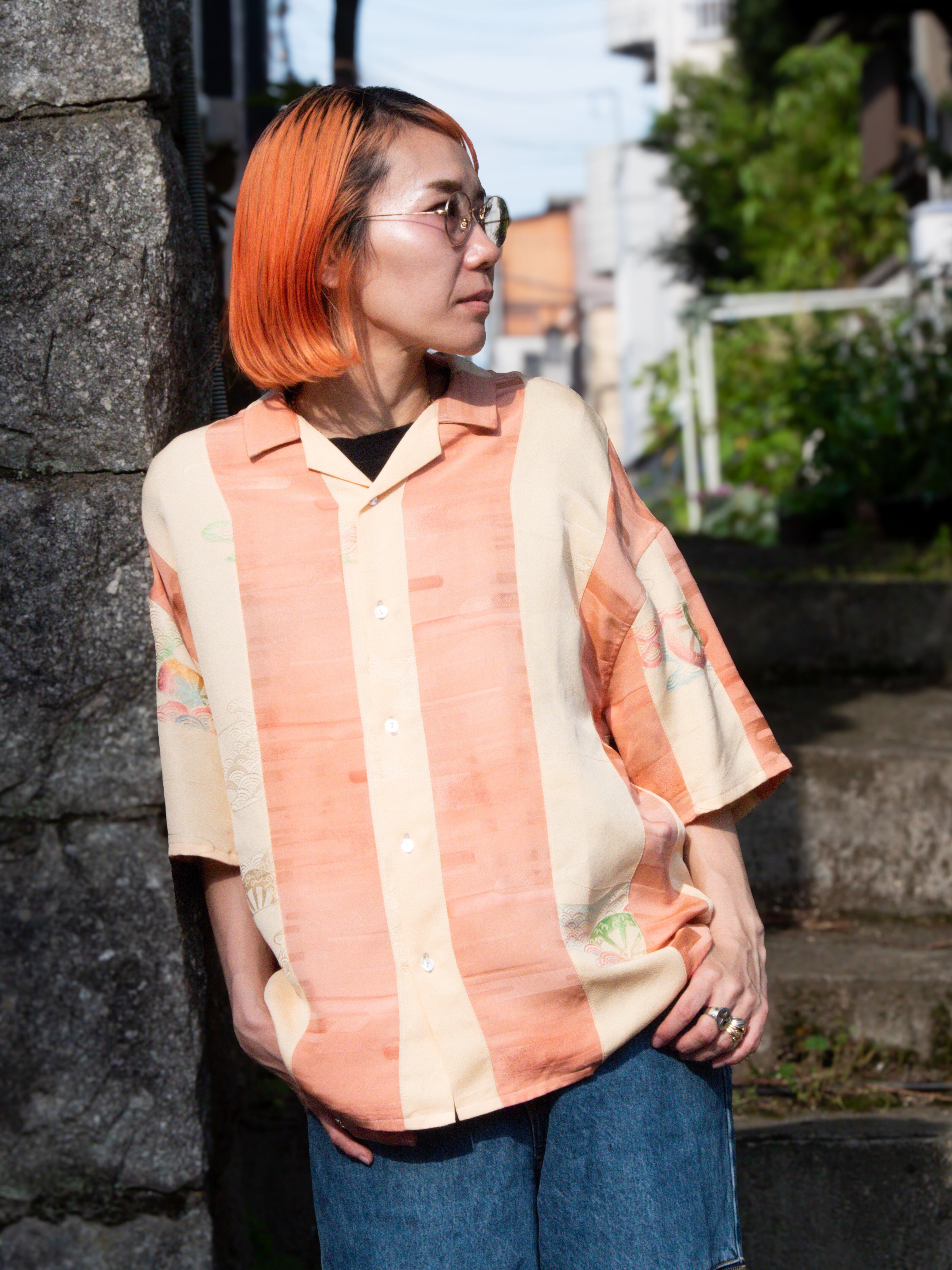タンスに眠っていた着物を使用しシャツを仕立てました。